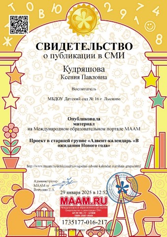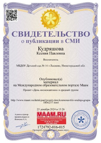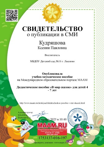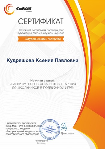 Научная статья "Развития воевых качеств у старших дошкольников в подвижной игре"